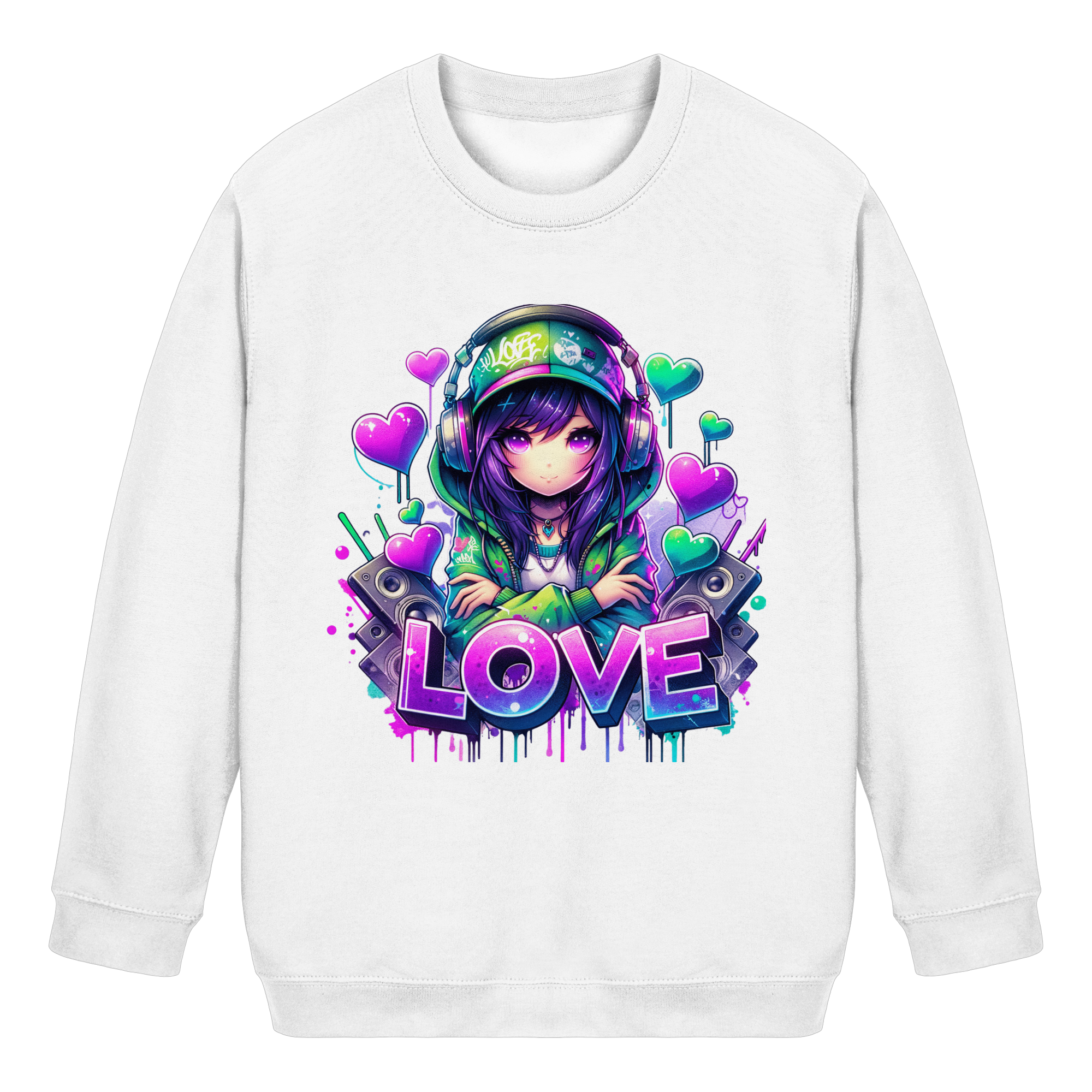 Hip Hop Anime Girl - Kids Basic Sweatshirt